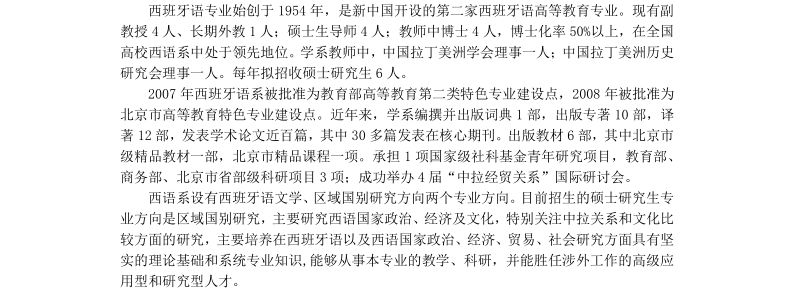 第一部分:关于对外经济贸易大学西班牙语语言文学专业的介绍: