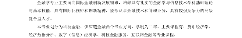 一、对外经济贸易大学信息学院金融学专业研究方向: