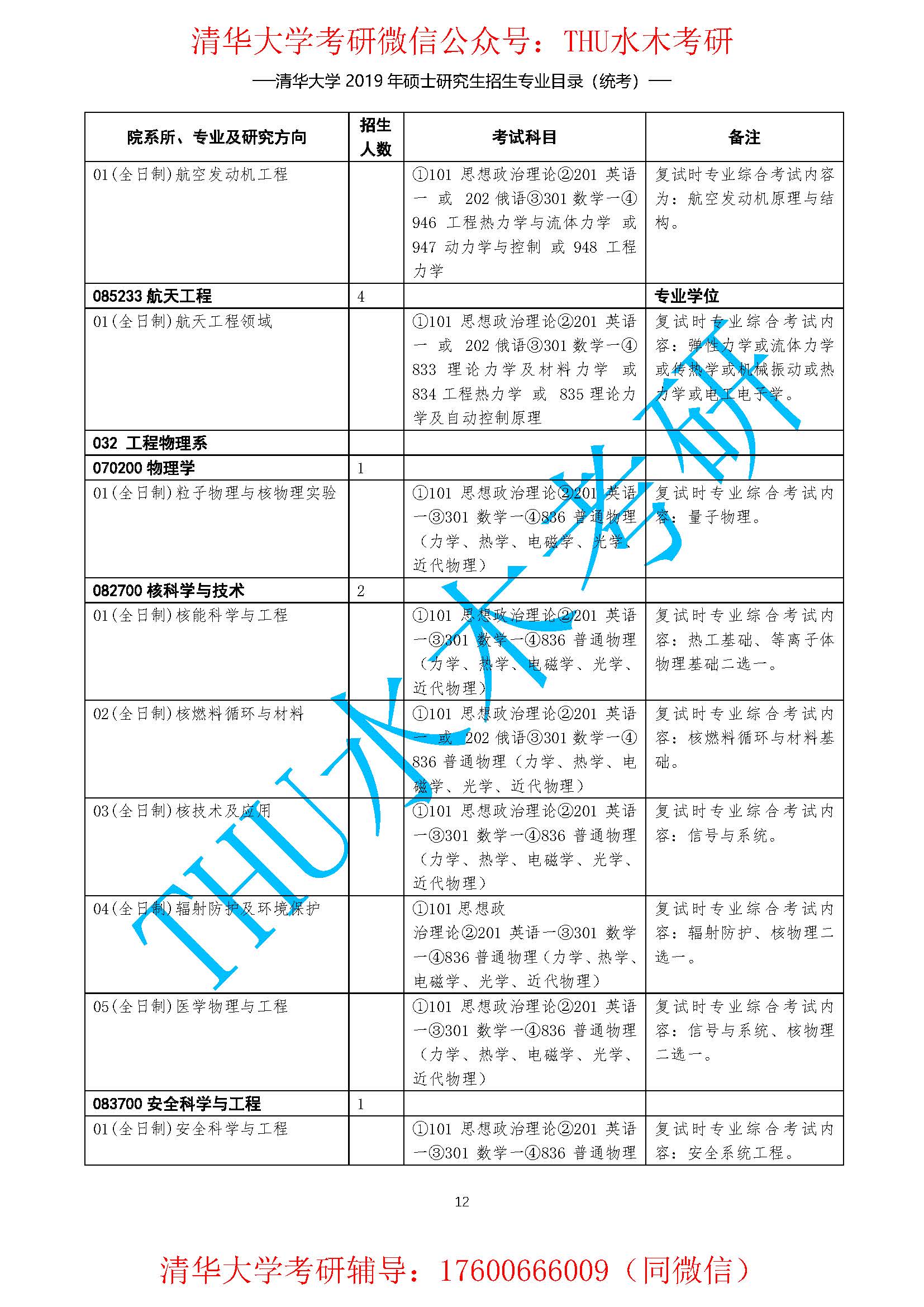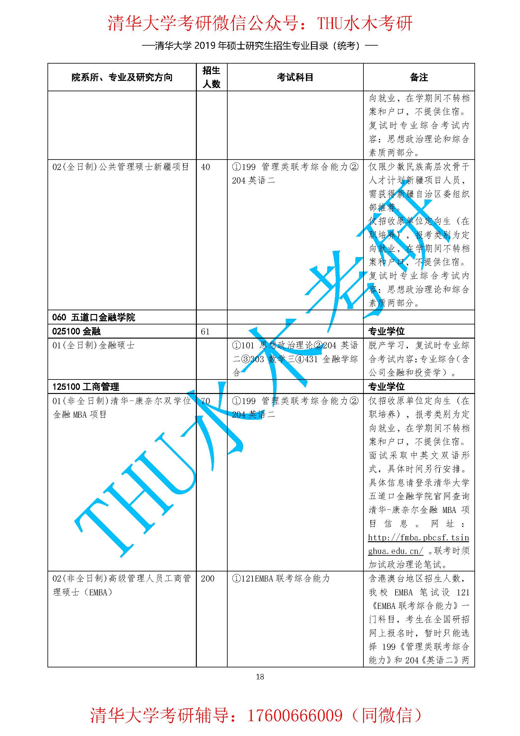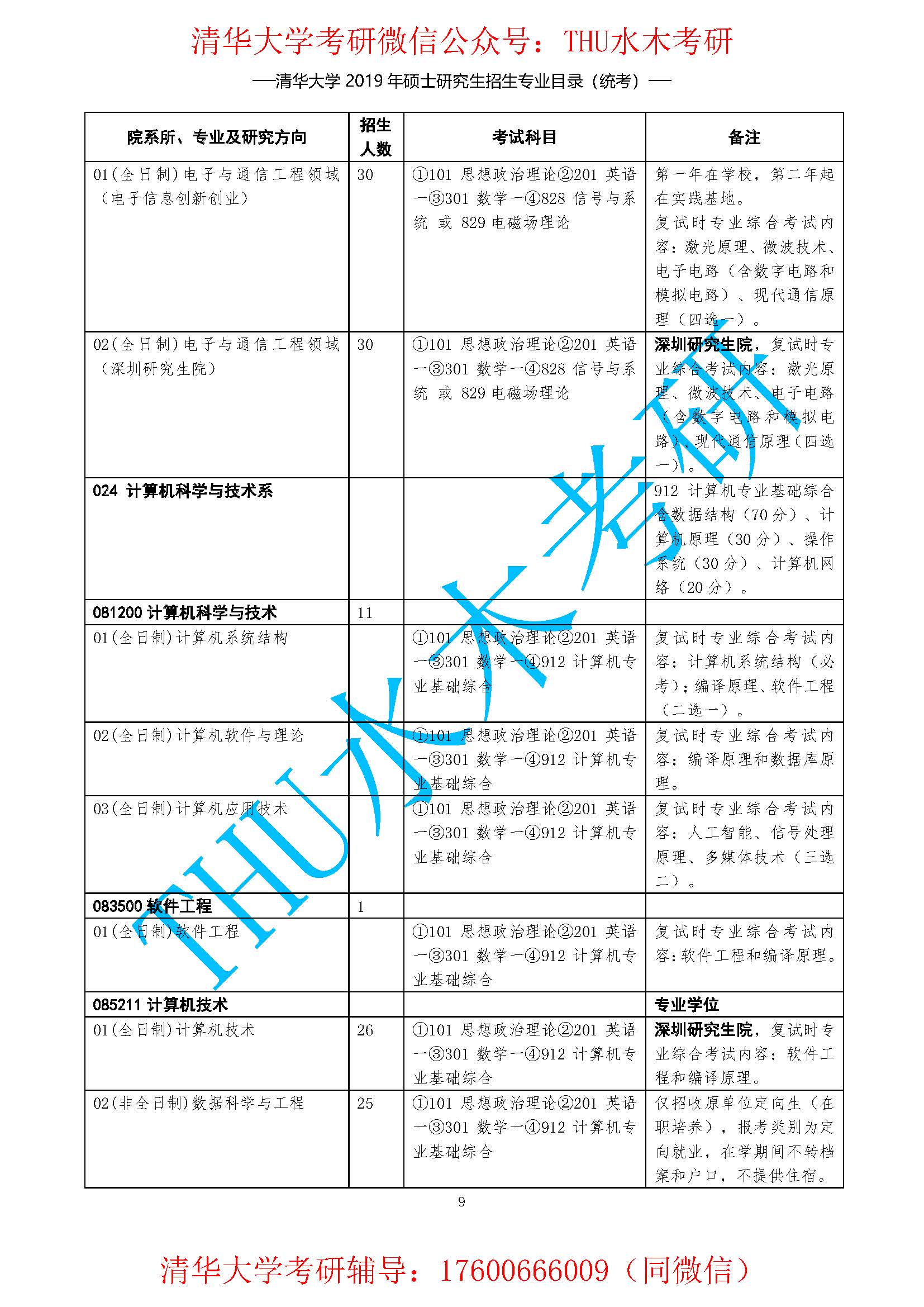 2019年清华大学硕士研究生招生专业目录、招生人数