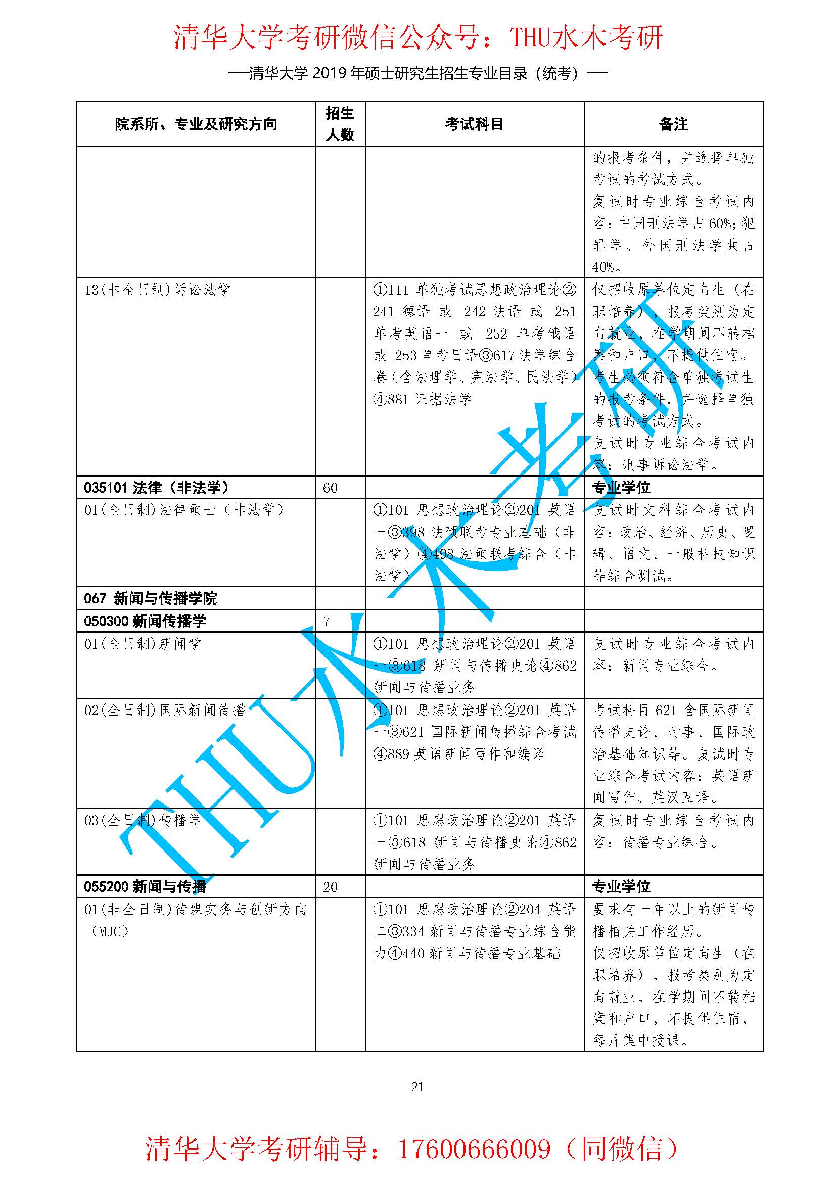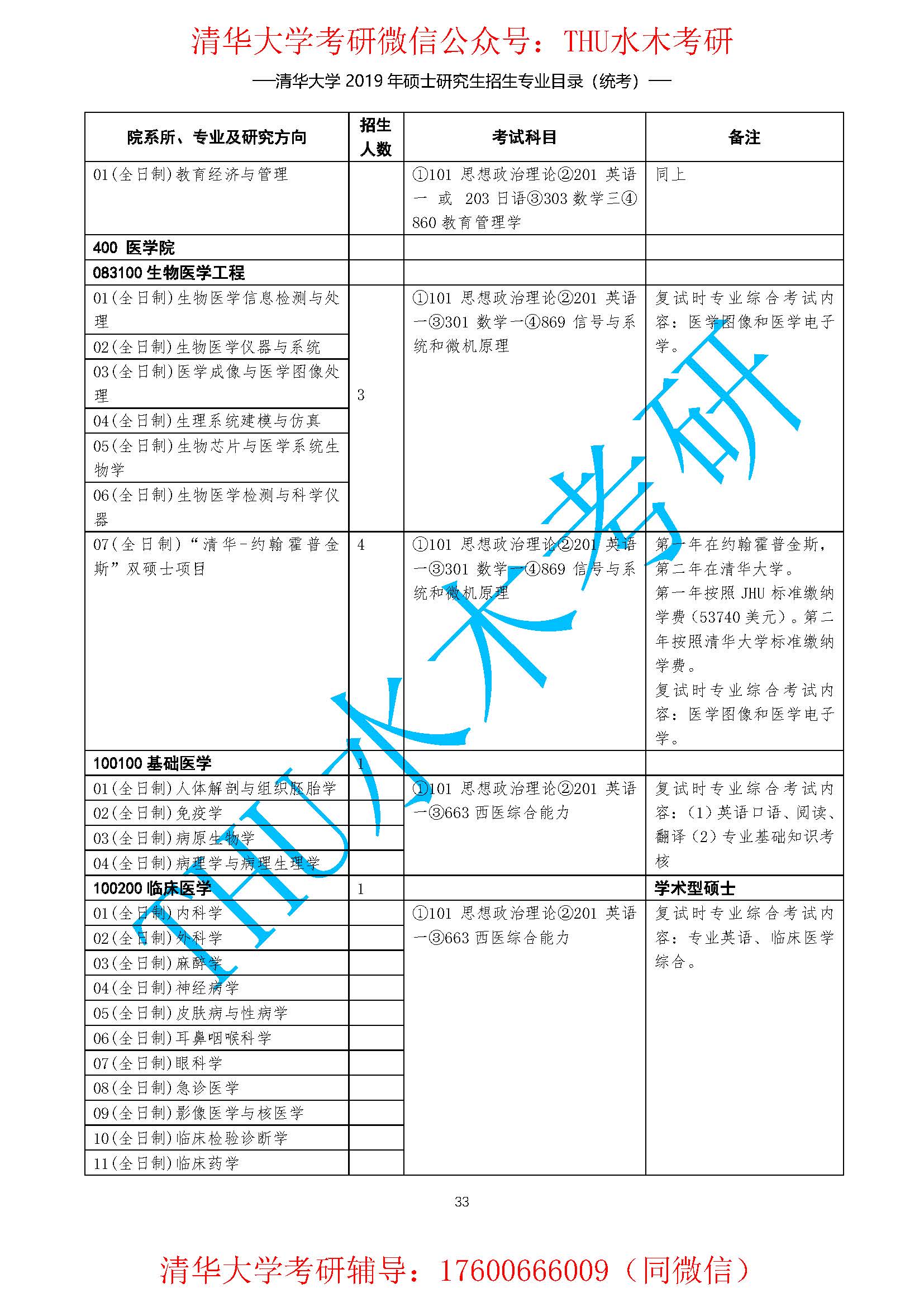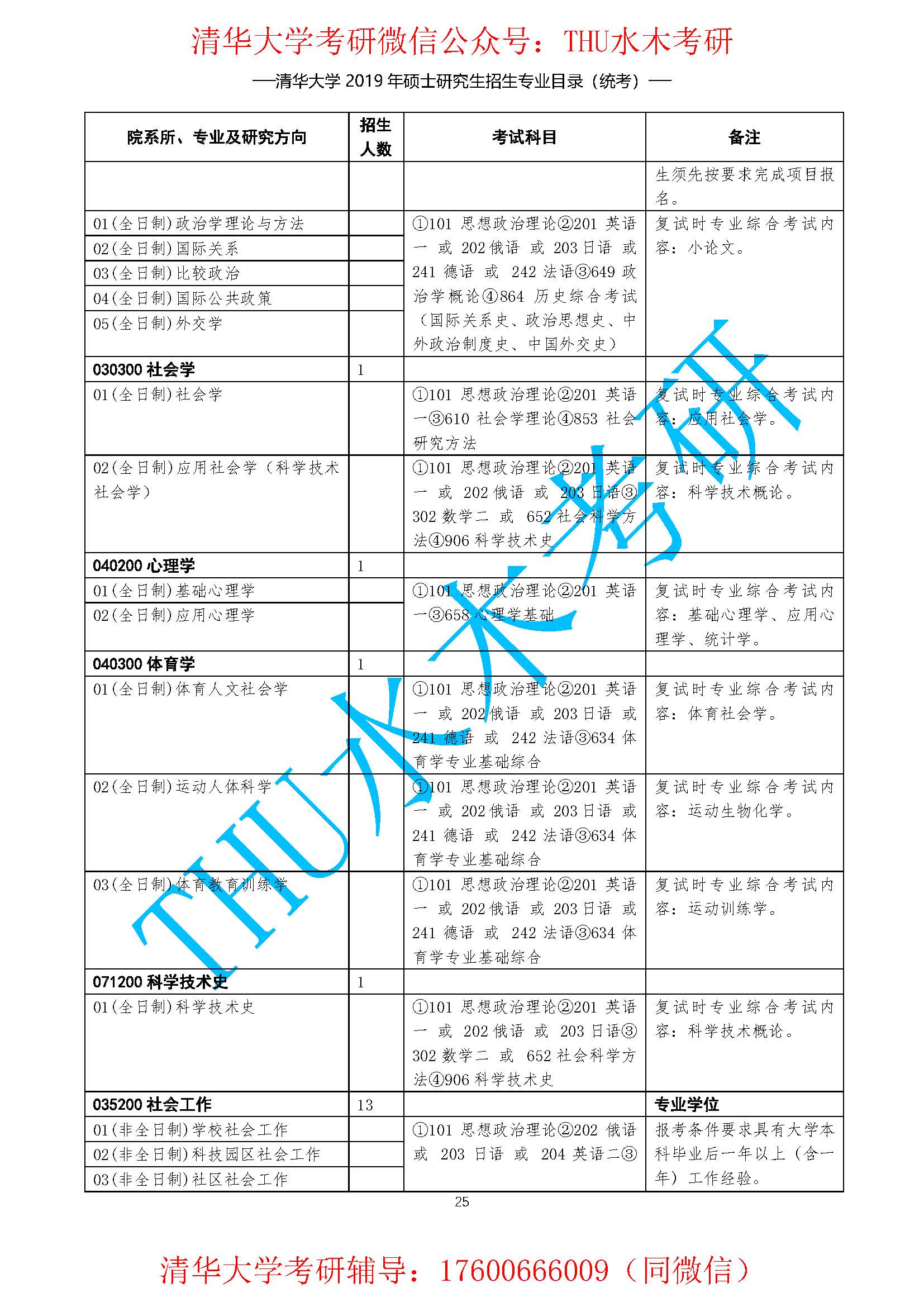 2019年清华大学硕士研究生招生专业目录、招生人数