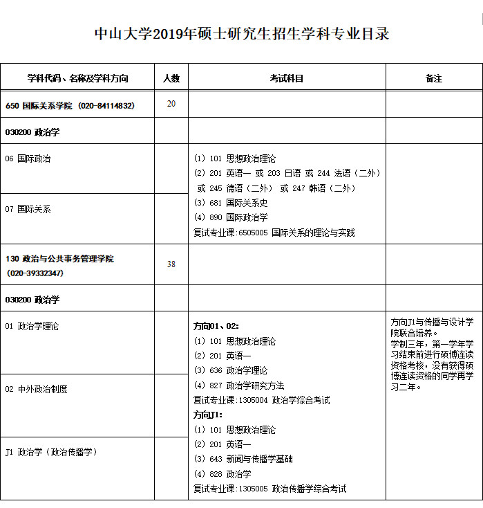 2019中山大学政治学考研招生专业、招生人数、考试科目