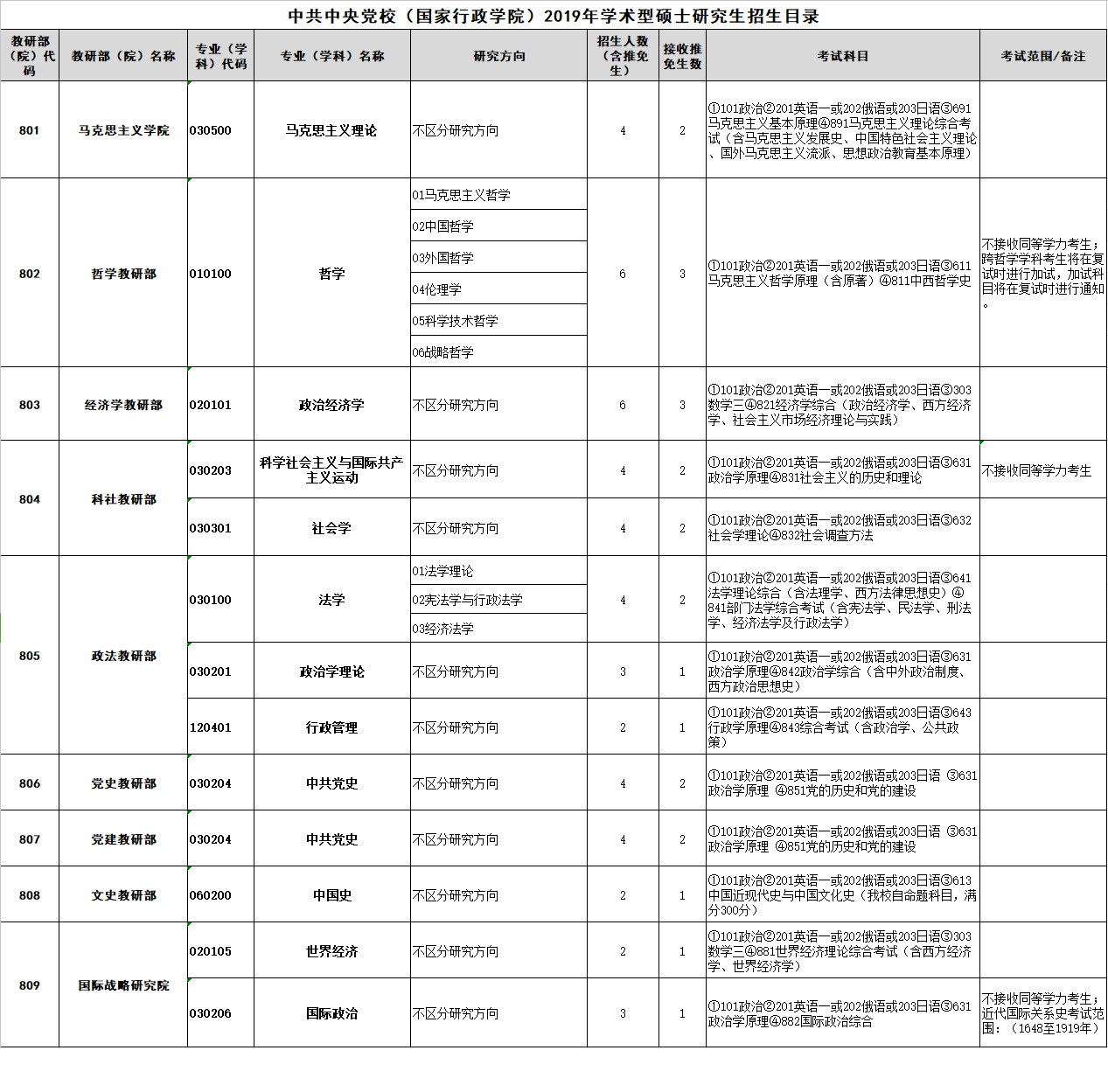 2019中共中央党校考研招生专业、招生人数、考试科目