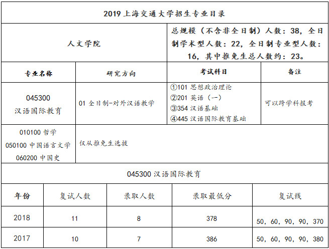 本文将系统的对上海交通大学汉语国际教育专业考研进行解析,主要有以下几个板块:学院介绍、专业介绍、近三年复试线、招生人数、考研科目介绍、考研参考书目及备考经验等几大方面。新祥旭考研丁老师(xinxiangxu123)将详细的为大家解答: