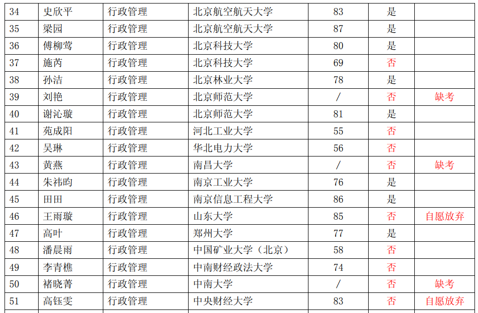 2019年北航行管推免公示名单