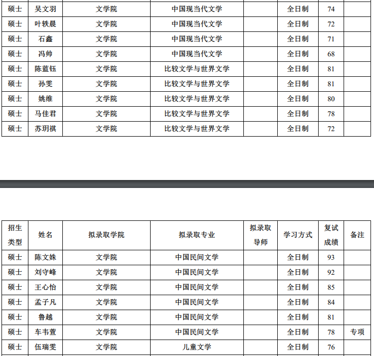 2019年北京师范大学文学院研究生推免拟录取名单公示