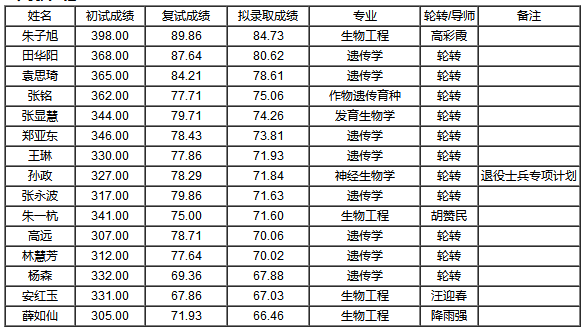 六、中国科学院大学发育生物学专业录取原则以及录取名单(2018)