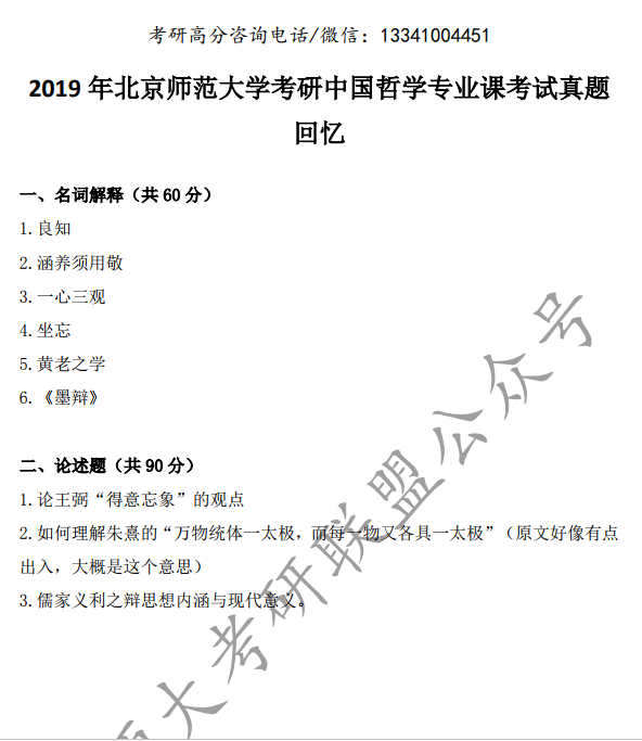 2019年北京师范大学考研中国哲学专业课考试真题回忆