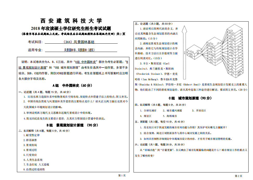 2018年西安建筑科技大学风景园林考研344风景园林基础(建筑)考试真题