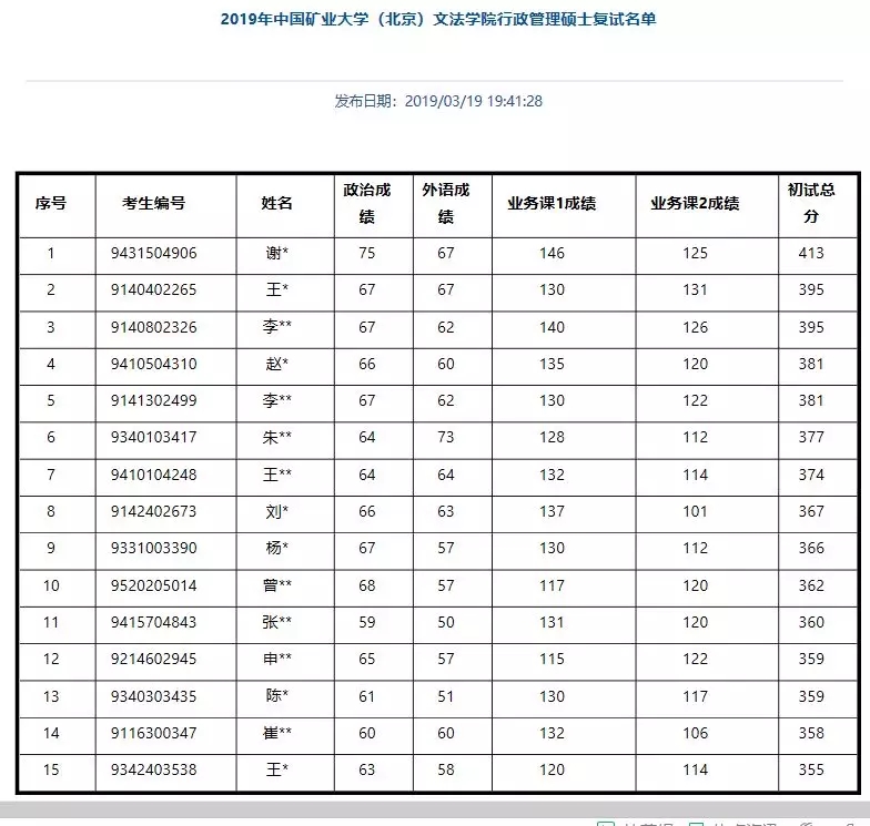 文法学院行政管理专业复试名单