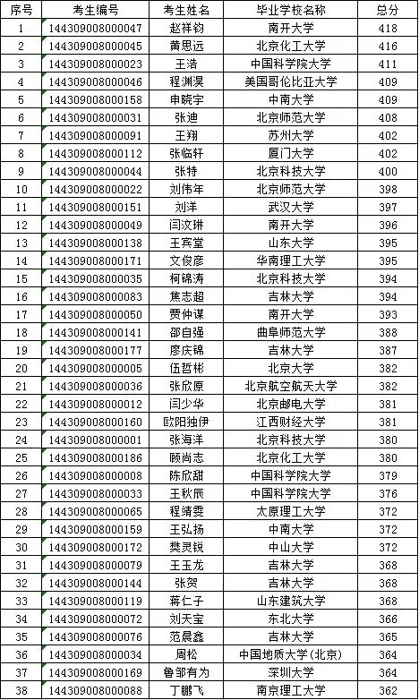 2019年考研物理所全国硕士研究生入学考试复试名单