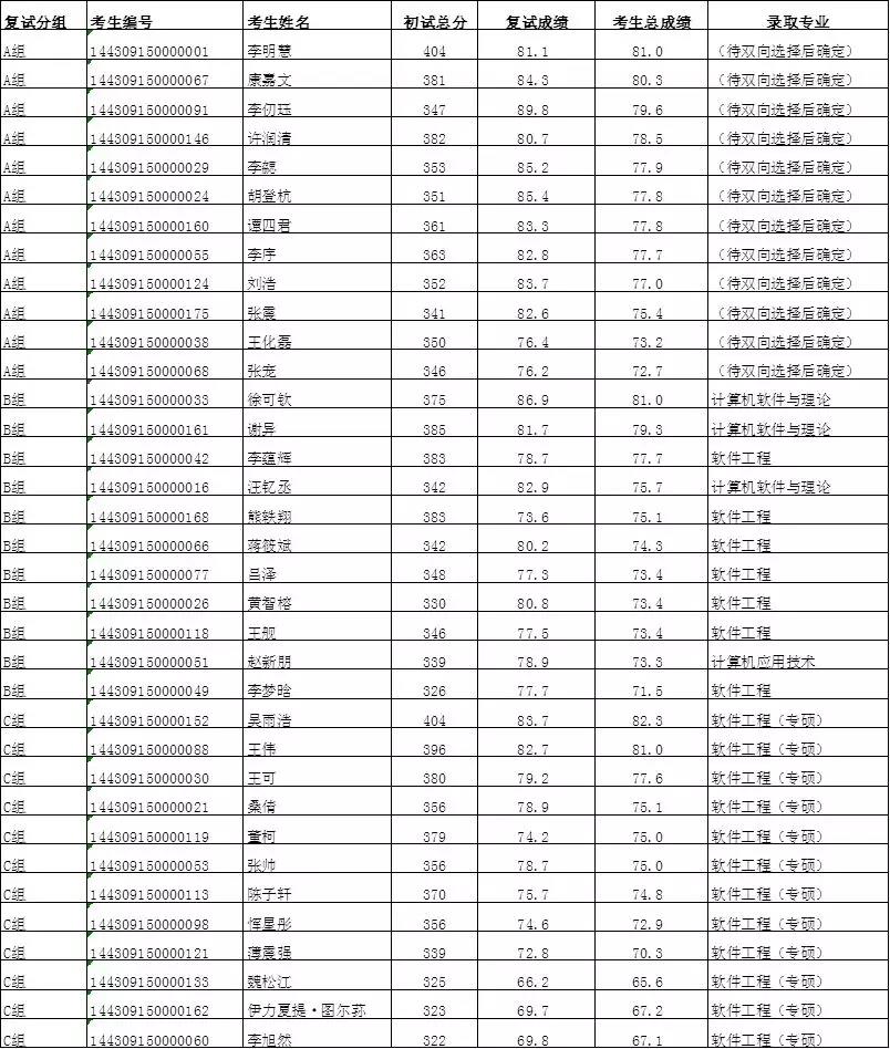 经各组复试,软件所招生工作领导小组审核,同意拟录取李明慧等33名统考考生为我所2019年攻读硕士学位研究生。现将拟录取名单予以公示,公示期为2019年3月30日至4月12日。在此期间,若对复试结果有异议,请与我们联系。