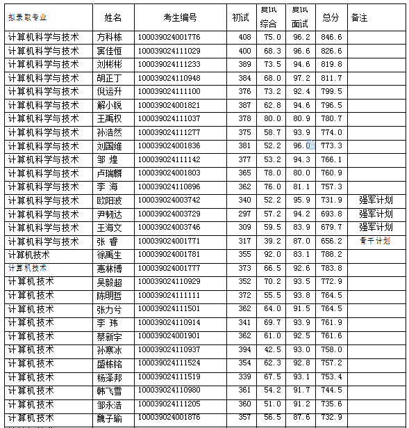 计算机系 2019 春拟录取硕士研究生名单公示