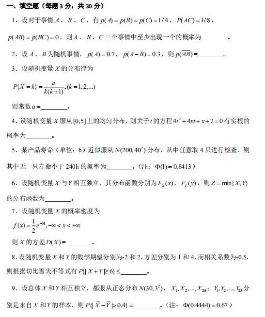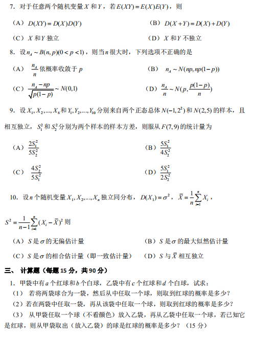 2016年中国林业科学研究院数理统计专业课考研真题