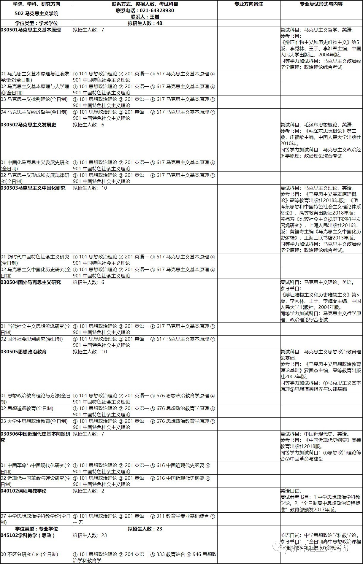 2020年上海师范大学教育硕士管理中心招生专业目录