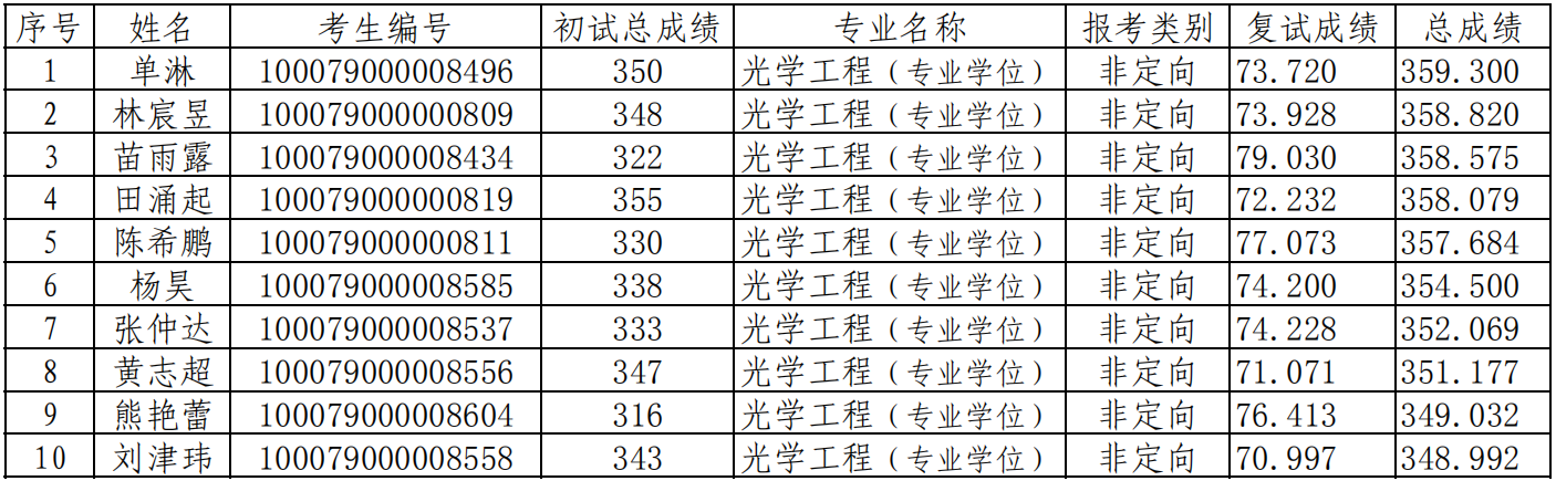 北京理工大学2019 年光电学院硕士研究生招生考试拟录取名单(第二批)