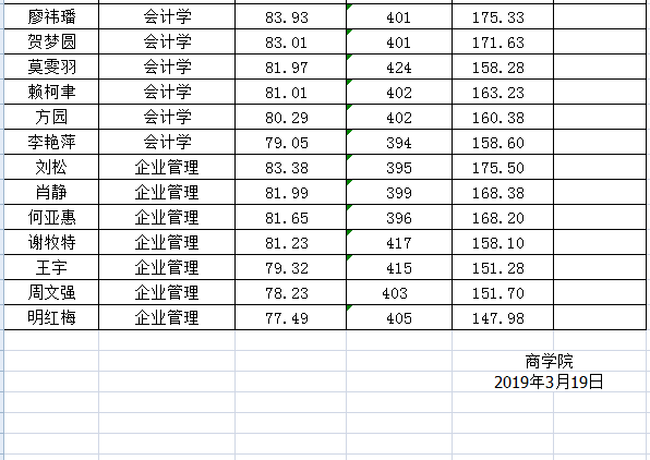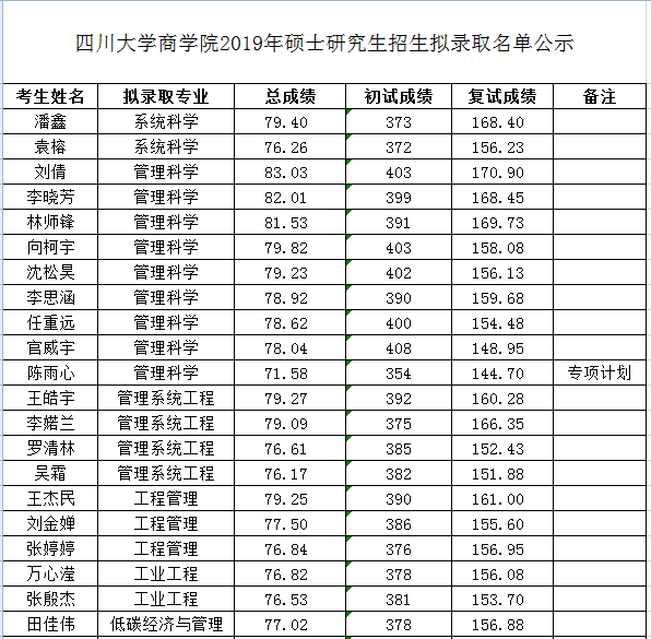 四川大学商学院2019年硕士研究生招生拟录取名单