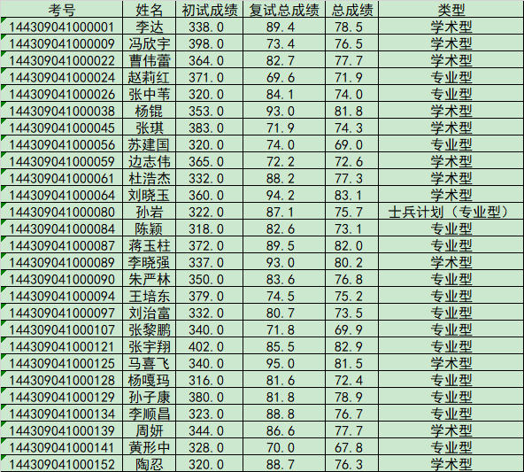 感谢广大师生对我所硕士研究生招生工作的支持和帮助,我所经上级主管部门核准名额68名(其中学术型硕士40名,专业型硕士27名,士兵计划专业型硕士1名),实际共招收68名(其中学术型硕士40名,专业型硕士27名,士兵计划专业型硕士1名)。其中拟录取推荐免试硕士研究生41名,其中学术型28名,专业型13名。2019年拟录取统招硕士研究生共27名(其中学术型硕士12名,专业型硕士14名,士兵计划专业型硕士1名)。