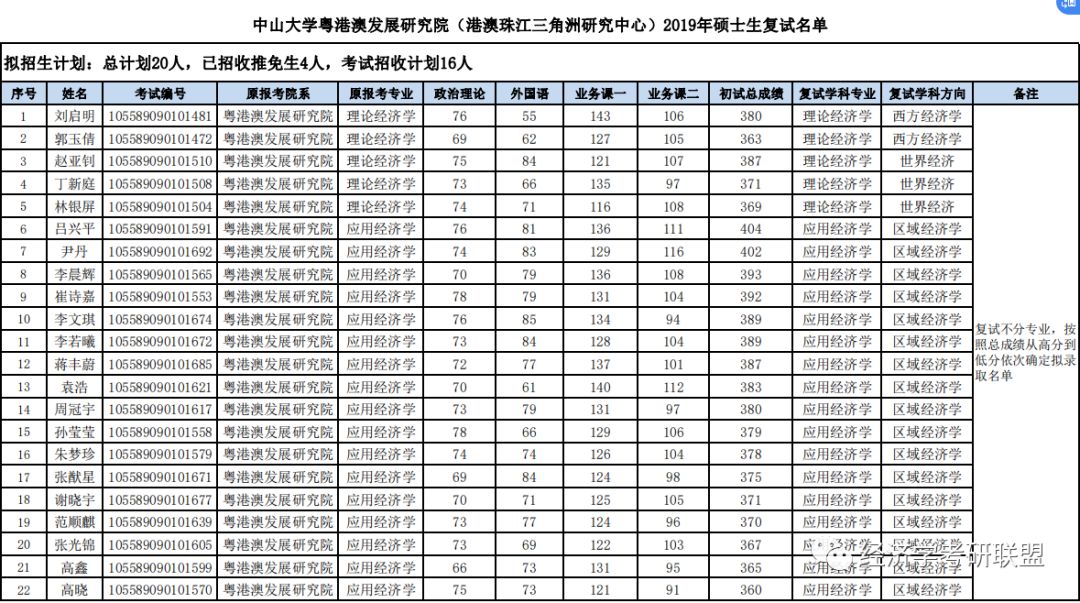 2019年中山大学粤港澳发展研究院(港澳珠江三角洲研究中心)复试名单以及录取名单