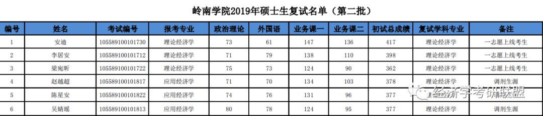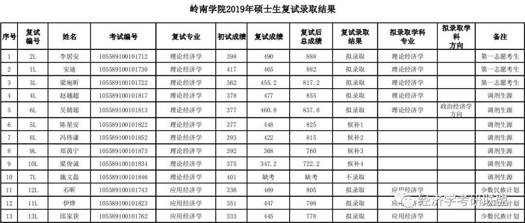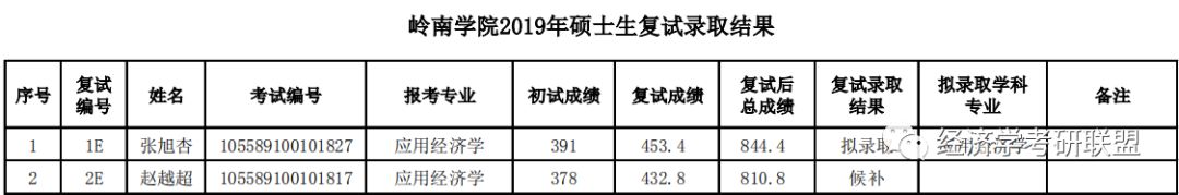 2019年中山大学岭南学院复试名单以及拟录取名单