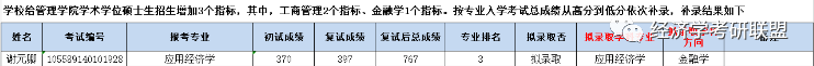 理论经济学录取5人其中政治经济学录取1人,初试成绩377,其他方向一志愿录取3人,最高分417,最低分362.