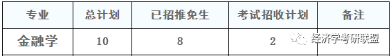 2019年管理学员金融学计划招生10人,推免8人,统考招生计划2人进入复试4人,最低分359.最高分408,其中录取3人。