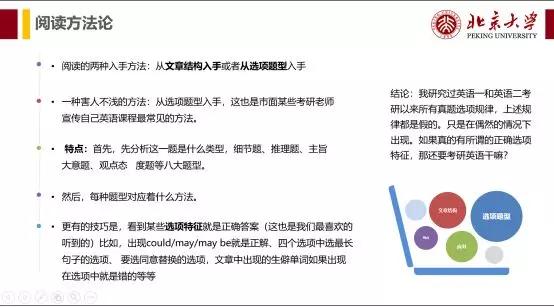 4. 关于阅读理解做题:一定不要迷信所谓的“不看懂文章做对题”技巧!一定不要迷信所谓的“不看懂文章做对题”技巧!一定不要迷信所谓的“不看懂文章做对题”技巧!技巧可以用,但是要排在能力之后。 真正的技巧是阅读文章、分析文章的技巧。