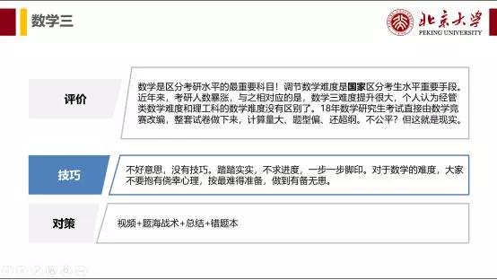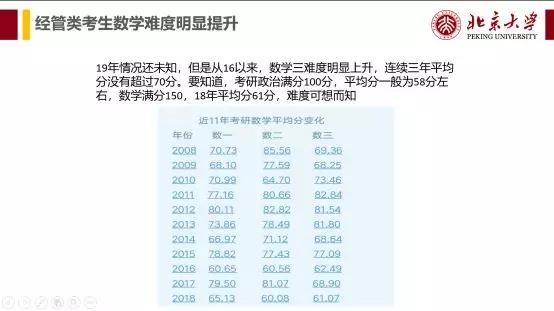 1.想给大家打个预防针, 尤其是经管类要考数学三 的同学,过去专门给经管考的简单数学三已经不复存在,做好迎接挑战的心理准备。 数学难度一步步提高,是整个考研的大趋势。 这几年,经济增速下行,GDP增速由以往的10%降到了如今的6.5%,根据奥肯定律,GDP增速每下降一个百分点,失业率上升两个百分点。大家可以想象,国内目前的就业压力有多大。本科生找不到好工作,考研成了缓解就业的救命稻草。考研人数每年将近20%的速度增长,每年都是突破历史新高,粥少僧多,如何才能将考生区分出来。公共课里面,政治无法拉分,英语适当拉分,真正能够区分的只有 数学 了。了解了这个大形势后,数学难度火箭般上升也就不奇怪了。