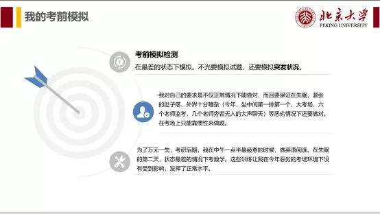 1. 不容失败,将风险降到最低。前面我说过,我第三年输不起了,这意味着我要把可能出现的所有风险降到最低。试卷难度上,无论是数学还是专业课,都是按照最难的准备。可是即使这样,最大的风险还是出现在考试当天。考试当天会不会出现意外情况,考试时的状态会不会极差,这都是我要想办法解决的问题。 训练自己能在状态最差的情况还能保持清晰的头脑,做对题目,成了我后期最重要的任务。