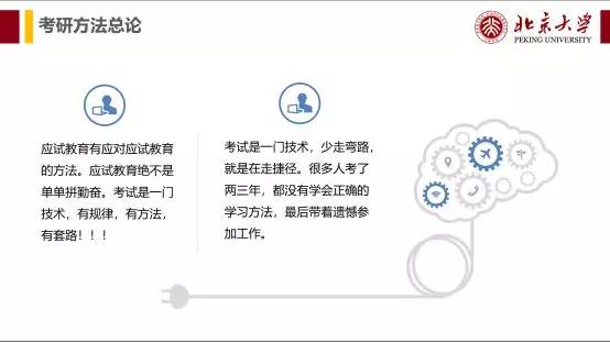 考研有技巧,有规律,有方法,有套路。 考研期间,大家除了拼时间,关键是拼方法。好方法,事半功倍。一上来就闷头学习,事倍功半。接下来,我会讲各科的复习方法,让大家看看有方法和没方法的区别。其实考研的过程就是摸索方法的过程,如果你11月才摸索出方法,早就晚了。不是说事倍功半吗?那一年不行就两年,两年不行就三年,我总会考上吧。可是即使你决定二战,甚至三战,没有掌握各科的学习方法,两三年之后,你依旧考不上。再说了,有多少人有这个决心和毅力能够考三年的?既然前人已经总结出来了学习方法,学过来就行了,为什么还要自己摸索呢。前人掉过的坑,前人告诉我后,我绕开就行了,为什么还要自己掉进去一遍之后,狼狈的爬起来总结经验,然后说,下次我就绕开了,还安慰道,这也是考研过程的一部分。殊不知,很多人掉进去后,花了很久才爬起来,有的,甚至爬不起来了……