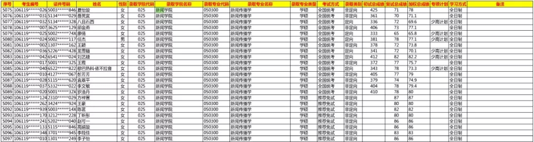2019重庆大学新闻传播学拟录取名单(含推免)