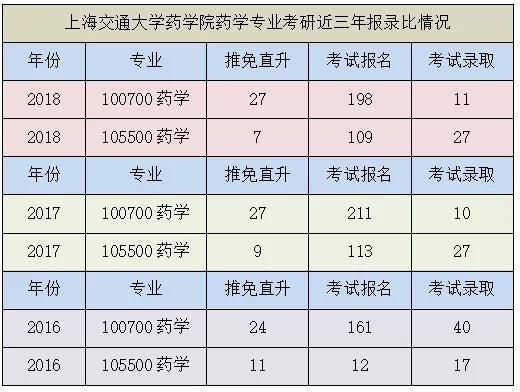 六、上海交通大学药学院药学专业考研近三年报录比情况: