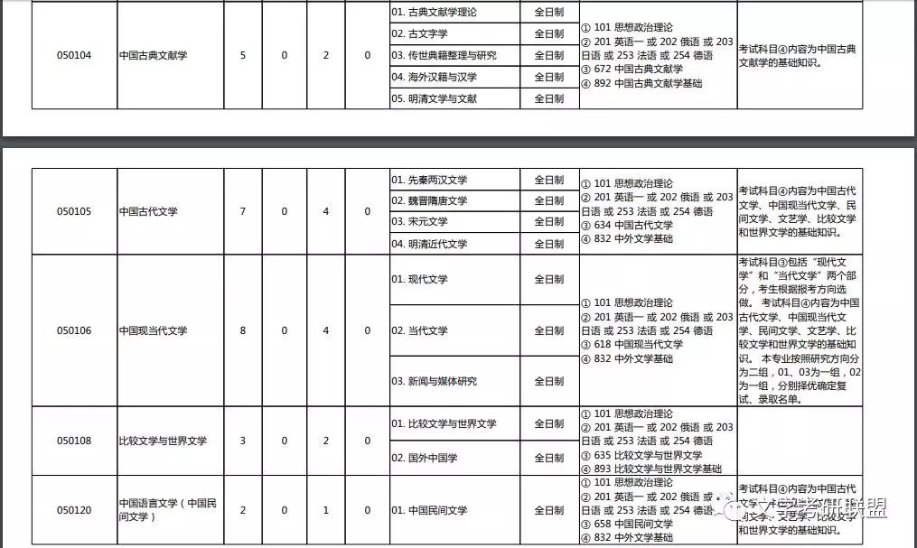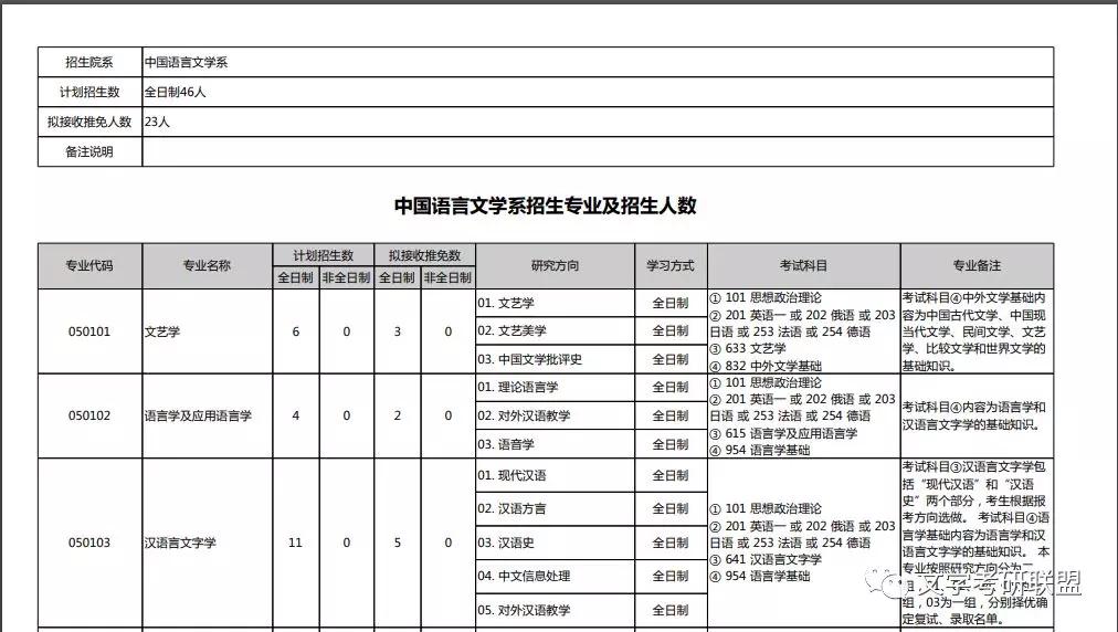 敲重点!北京大学2020年硕士研究生中国语言文学系专业目录(校本部)