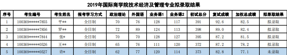 技术经济及管理统考录取4人,初试最低分372,最高分398
