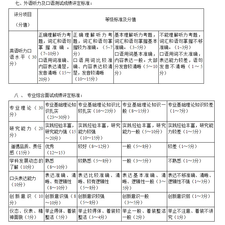 外语听力及口语测试分专业,由人文学院负责组织有留学经验的、精通外语的3-5名教师组成面试小组,以口试为主。外语听力及口语测试当场给出分数,听力及口语测试过程进行全程录音和录像。