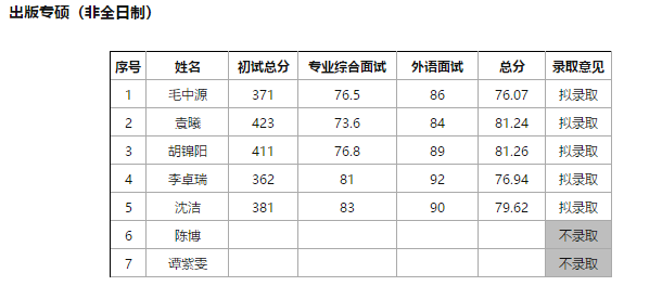 出版硕士录取14人,一志愿录取9人,调剂录取5人