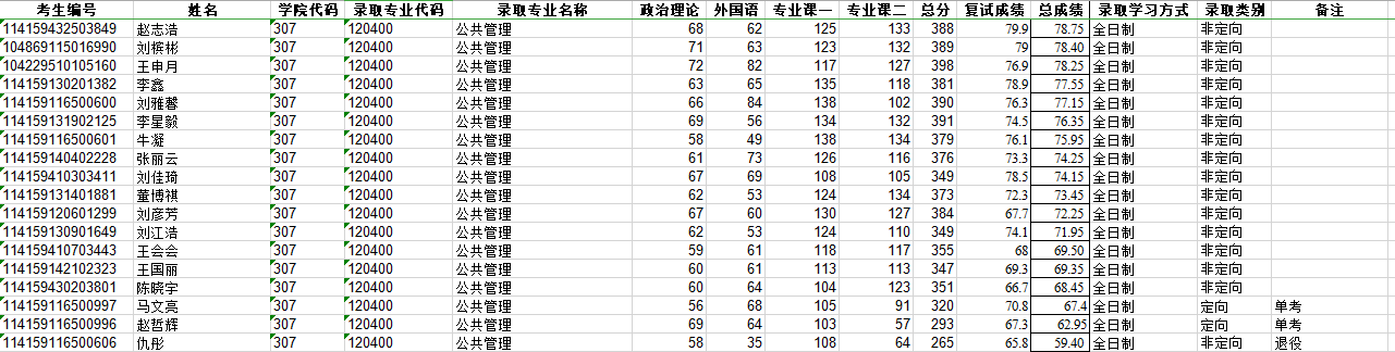 公共管理学硕统考录取18人,含单考2人,退役士兵计划1人;初试最低分347,最高分398