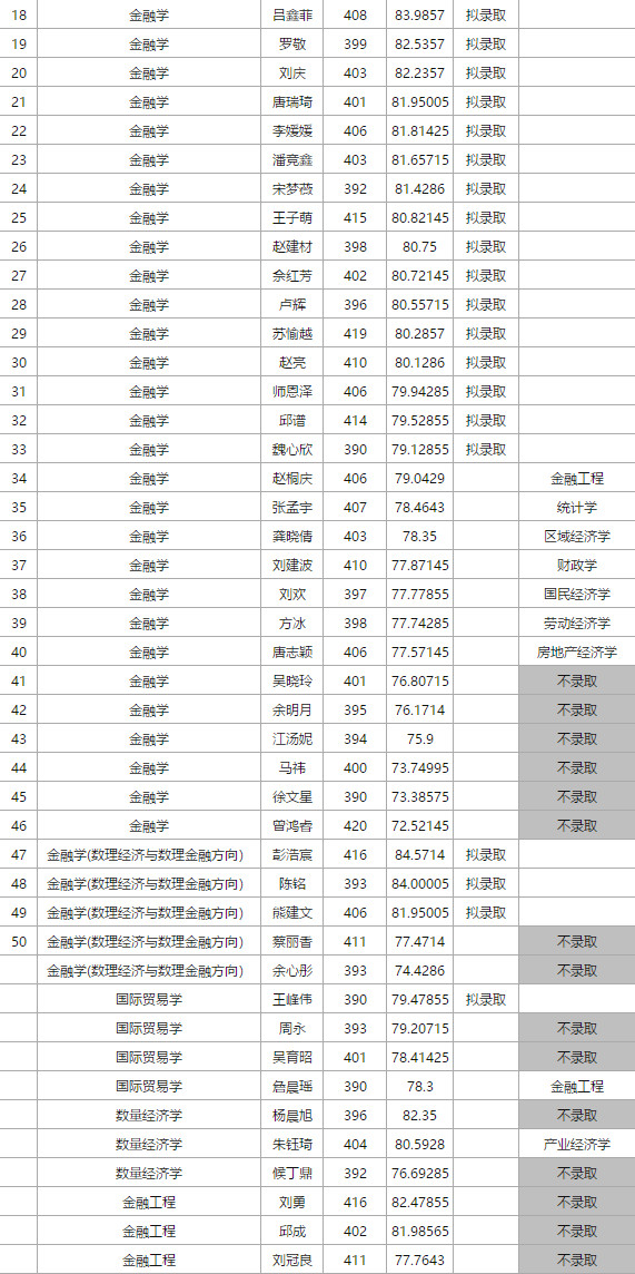 金融学16人。金融学(数理经济与数理金融方向)3人,国际贸易学1人,国民经济学由金融学调剂录取1人,区域经济学由金融学调剂录取1人,财政学由金融学调剂录取1人,产业经济学由数量经济学调剂录取1人,劳动经济学由金融学调剂录取1人