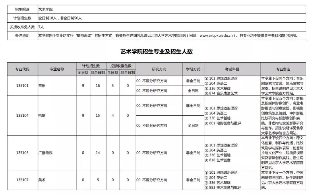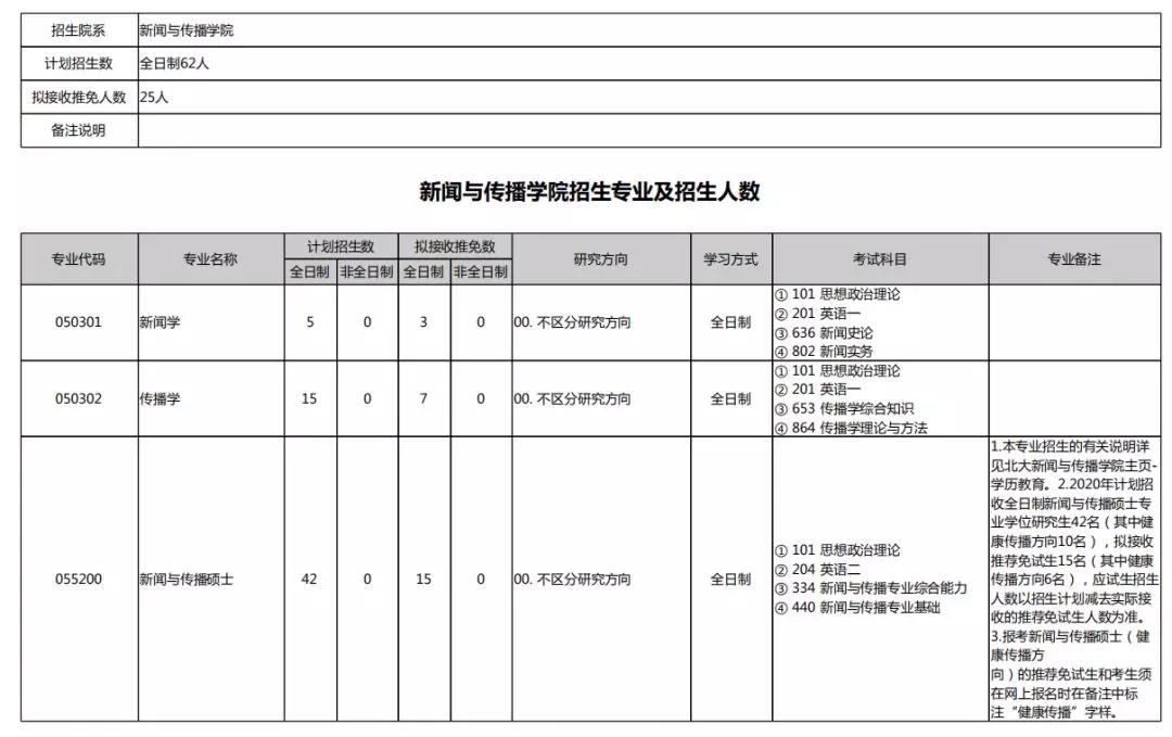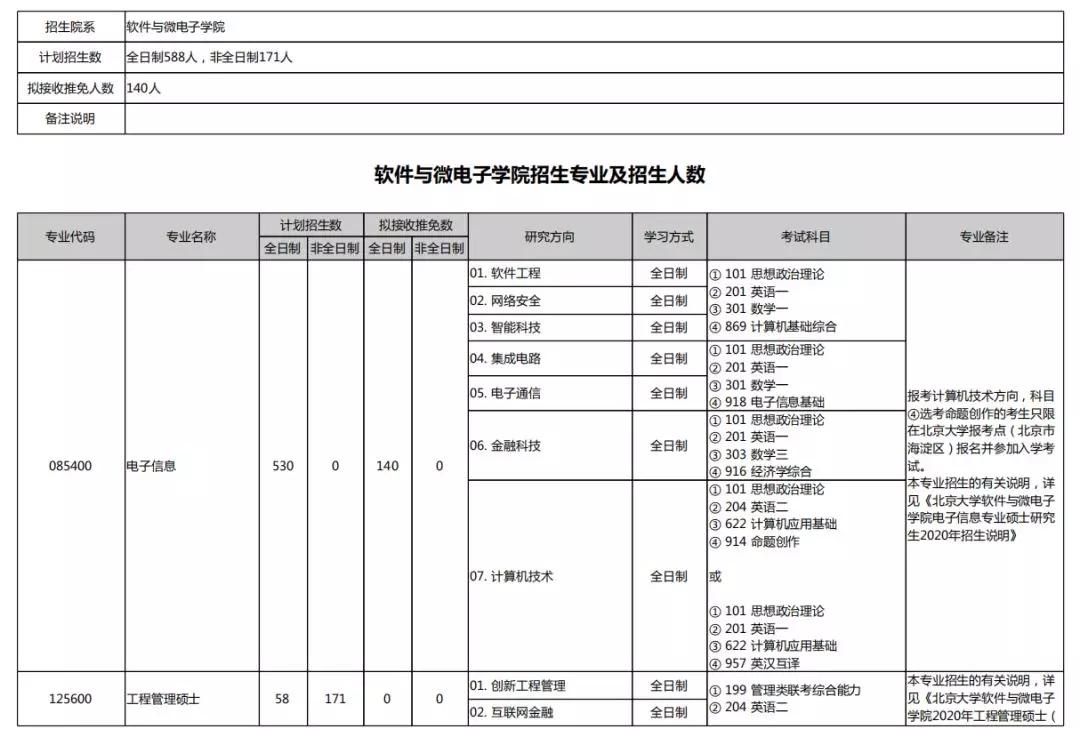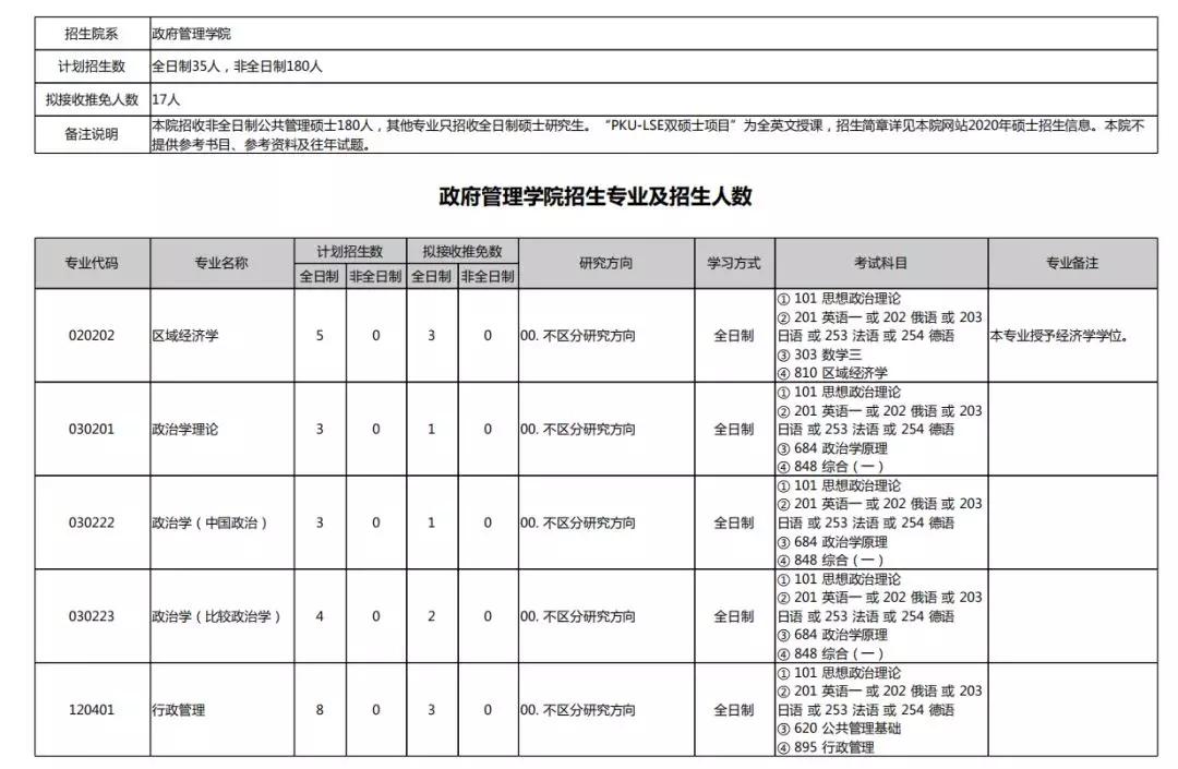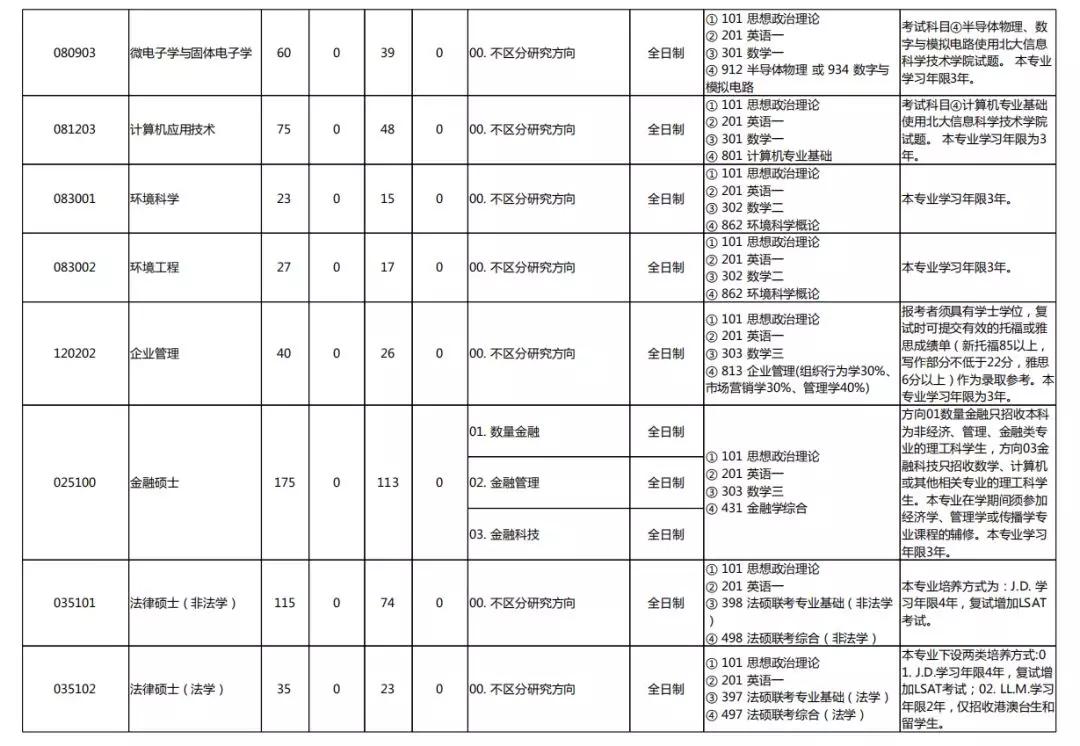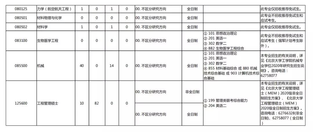 2020北京大学硕士研究生招生专业目录汇总