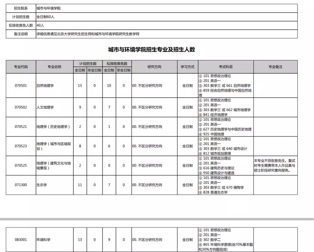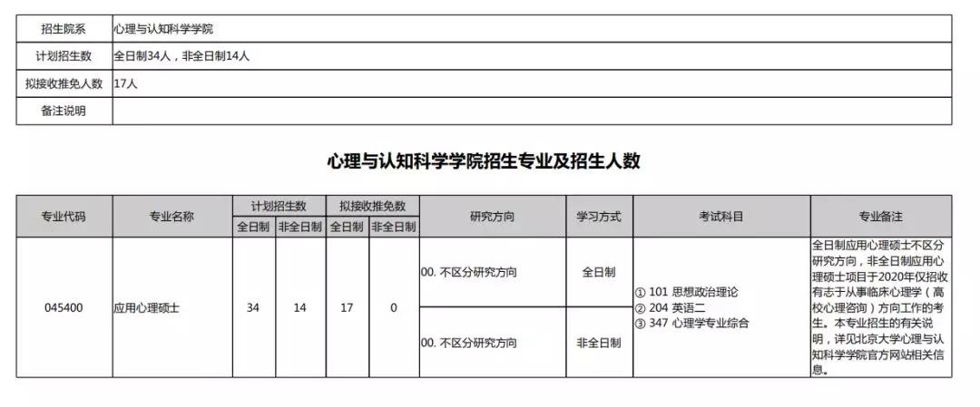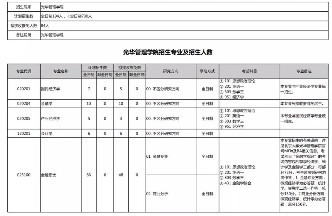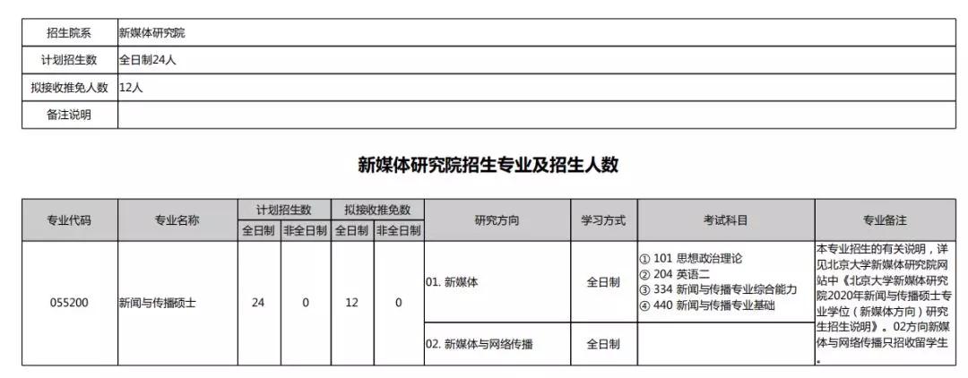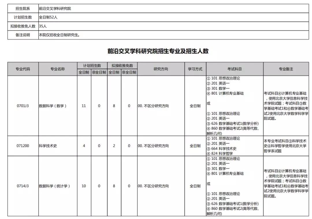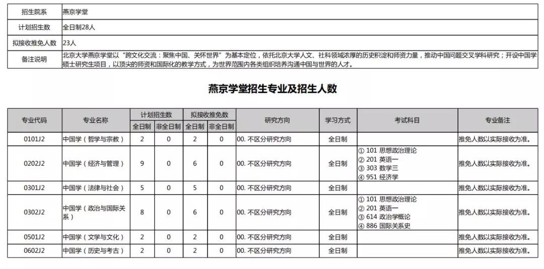 2020北京大学硕士研究生招生专业目录汇总