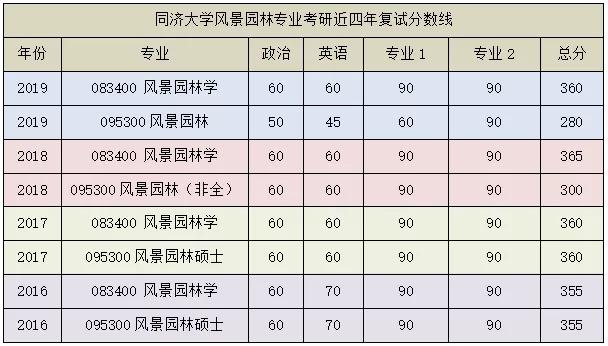 六、同济大学风景园林考研近四年复试分数线: