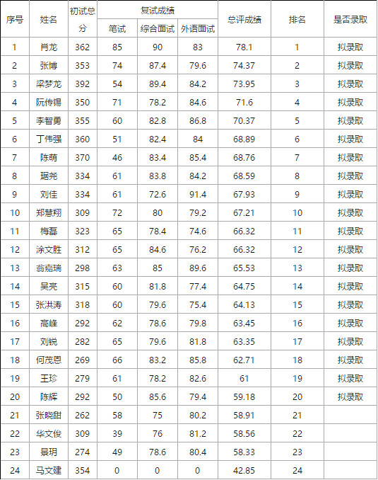 入学考试的总评成绩(初试成绩和复试综合成绩加权分)和复试笔试、面试成绩均为百分制。