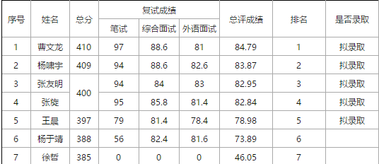 面试分小组进行,复试小组当场给出评语和分数,面试小组成员的平均评分即为综合面试成绩。