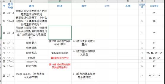 图五:城乡规划原理真题题频整理(部分)
