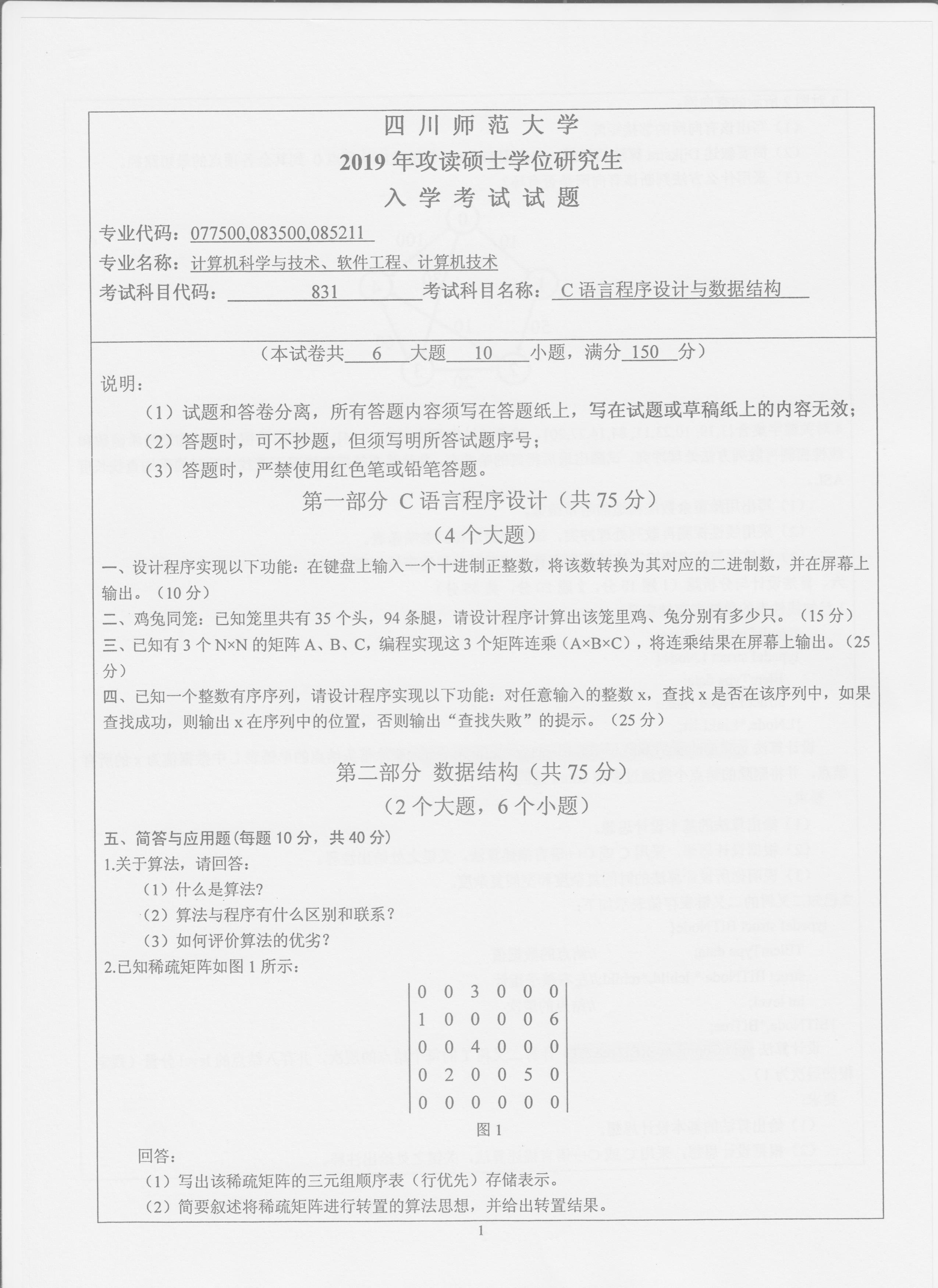 新祥旭考研--2019年四川师范大学计算机科学与技术831考研真题完整版