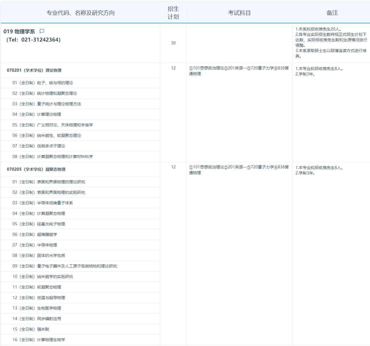 复旦大学考研辅导班:复旦大学2021年物理学系研究生招生专业目录