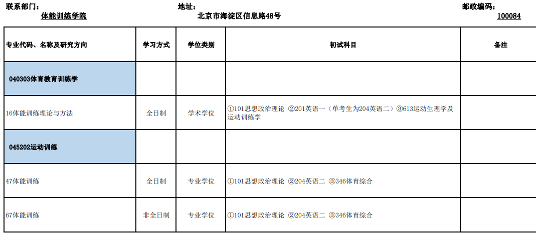 北京体育大学考研辅导班:北体体能训练学院2020年考研招生目录