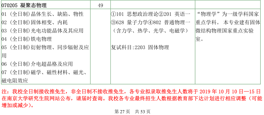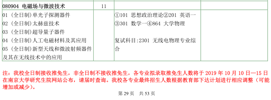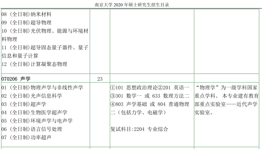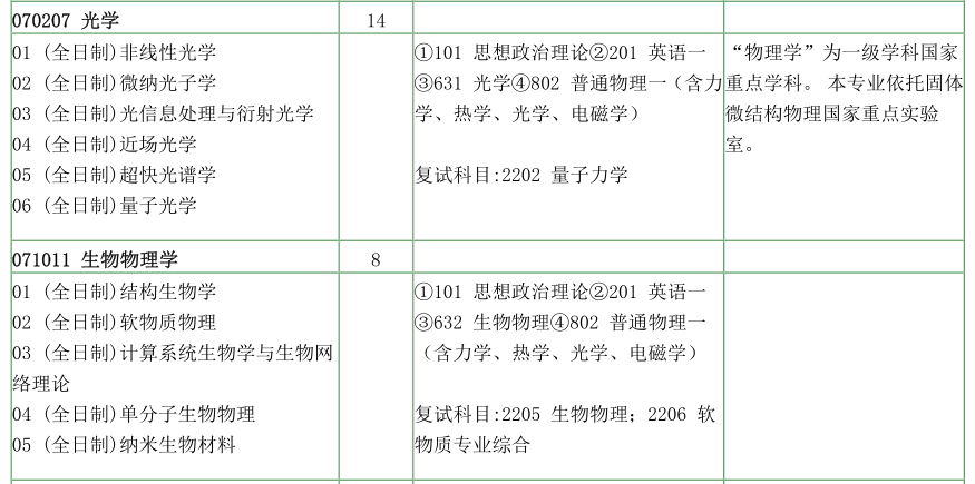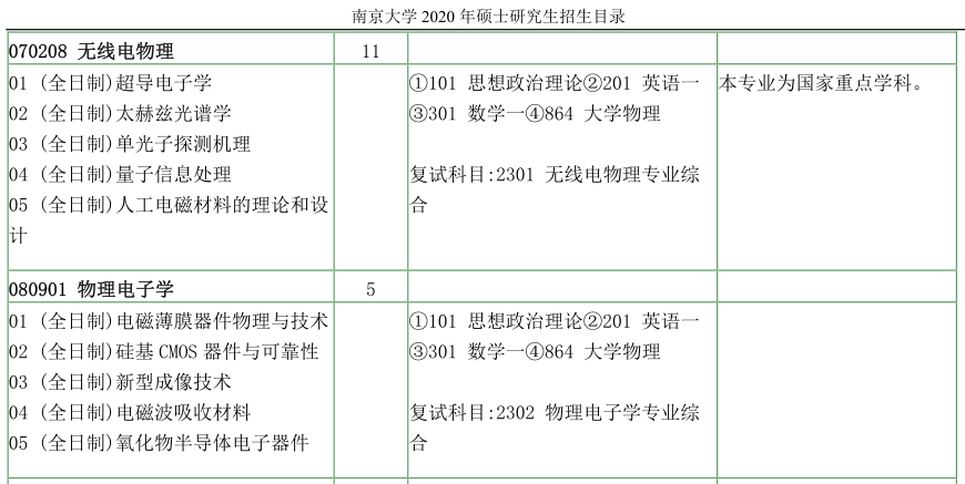 南京大学考研辅导班:南京大学物理学院2020年硕士研究生招生目录