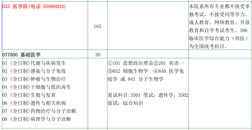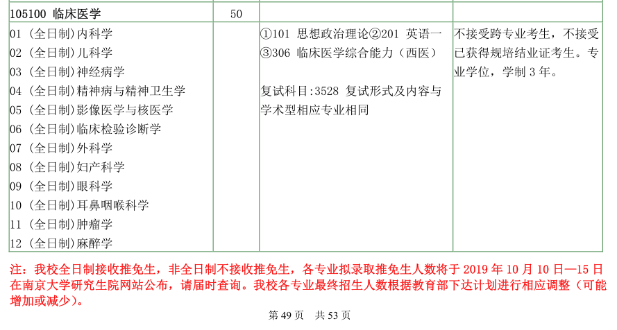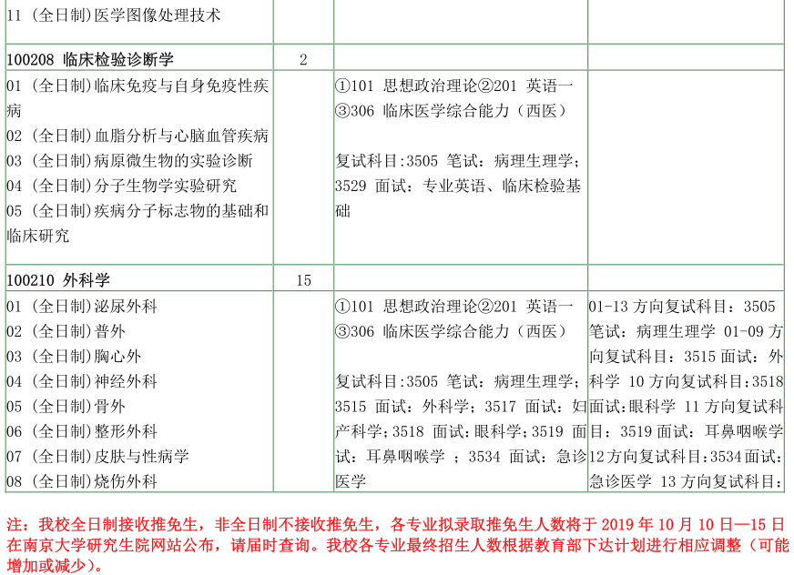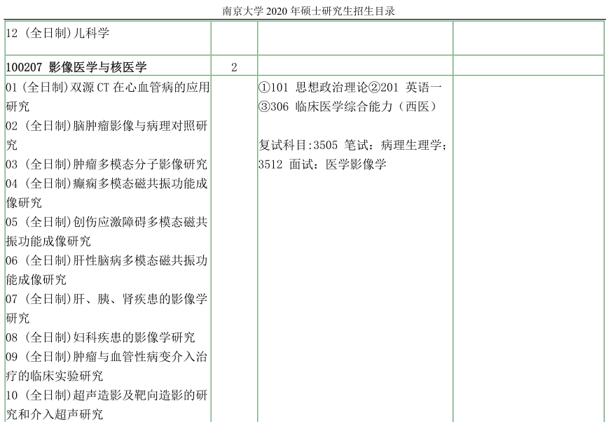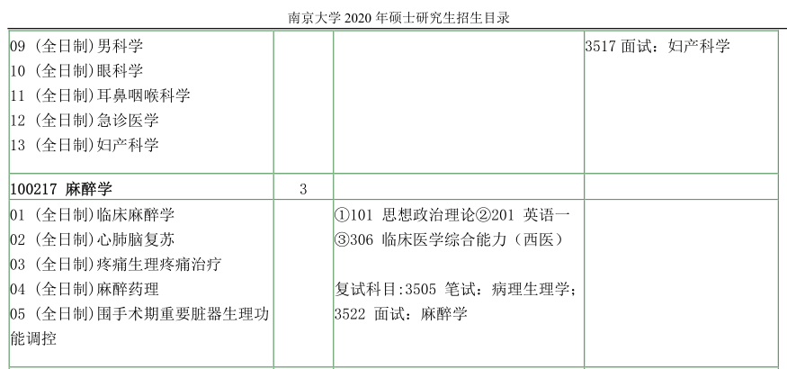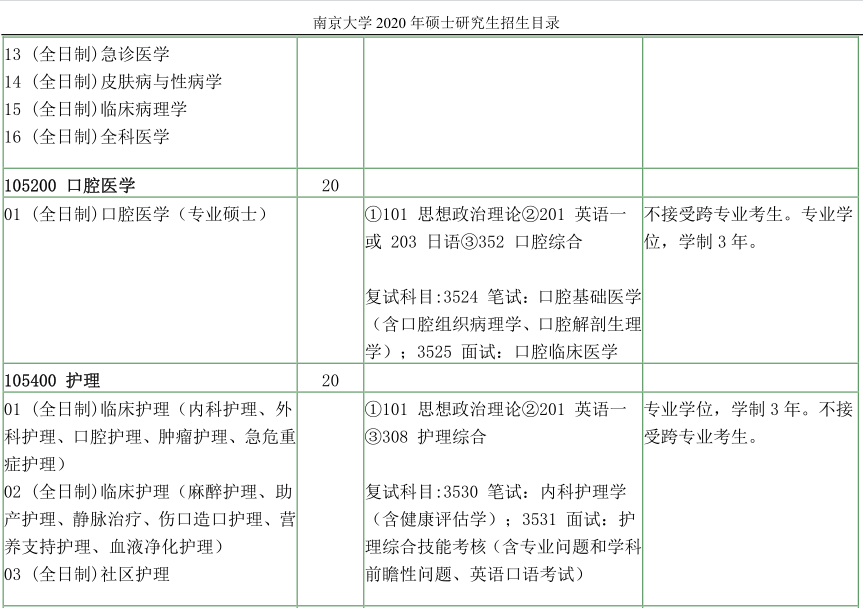 南京大学考研辅导班:南京大学医学院2020年硕士研究生招生目录