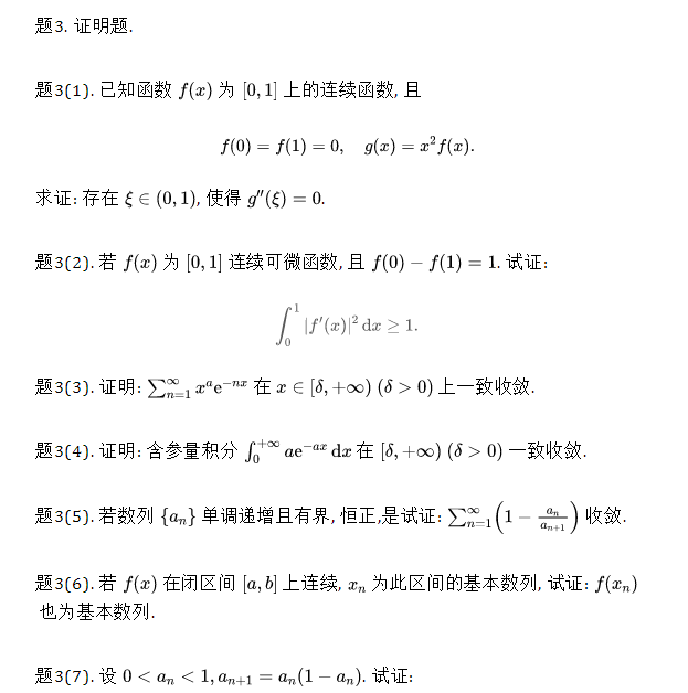 电子科技大学2020年数学分析601考研真题