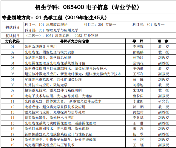 西安电子科技大学考研辅导班:2020西安电子科技大学光学工程招生专业目录